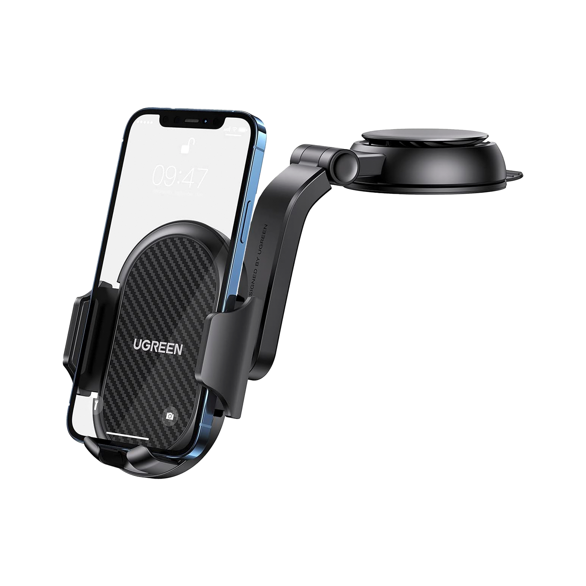 Soporte para Teléfono con Ventosa | Diseño en forma de Cascada | Instalación en Parabrisas o Tablero | Seguro de Succión | Ajuste Vertical 220° | Ajuste Horizontal 60° | Gira 360° | Compatible con dispositivos de 4